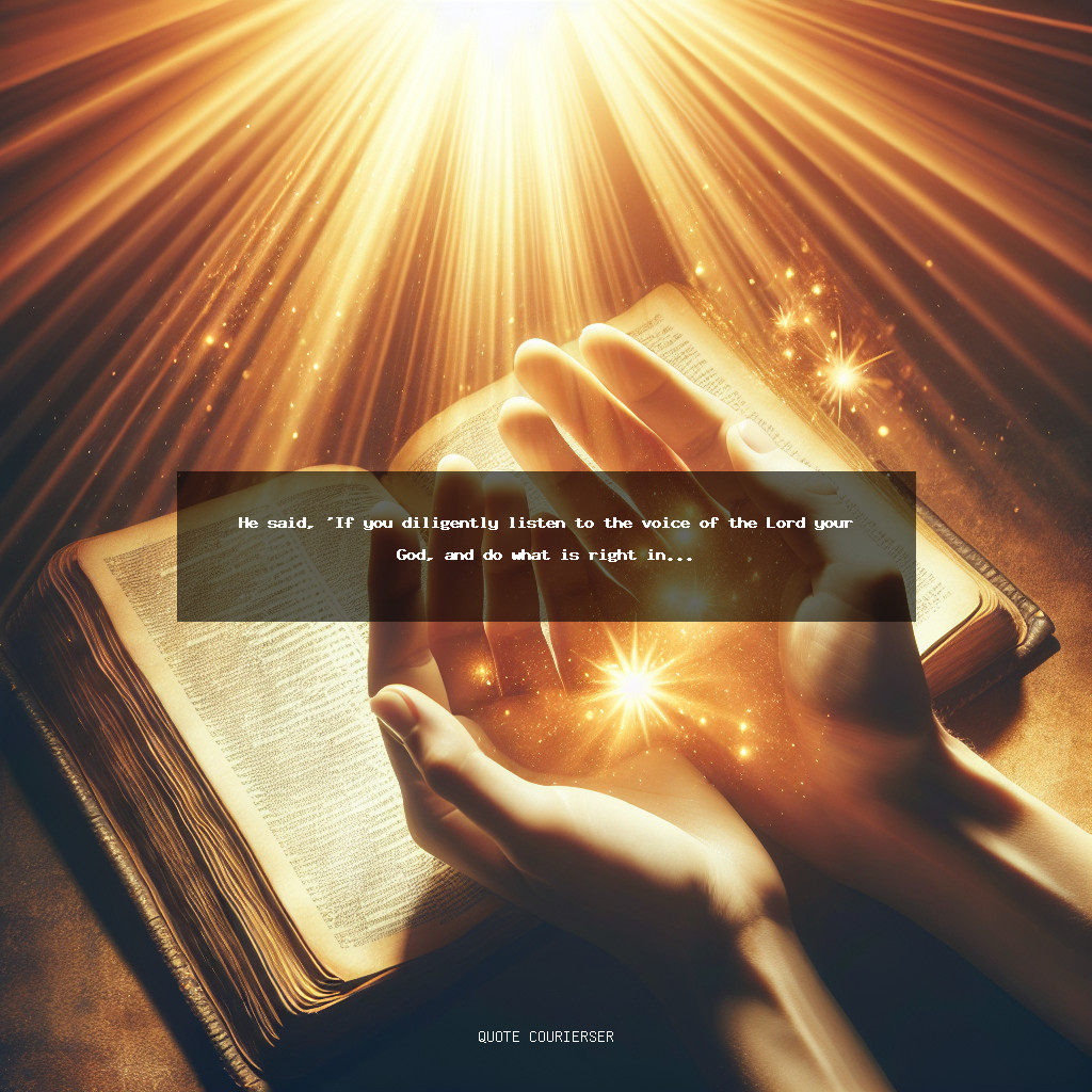 “He said, ‘If you listen carefully to the Lord your God and do what is right in his eyes, if you pay attention to his commands and keep all his decrees, I will not bring on you any of the diseases I brought on the Egyptians, for I am the Lord, who heals you.’”