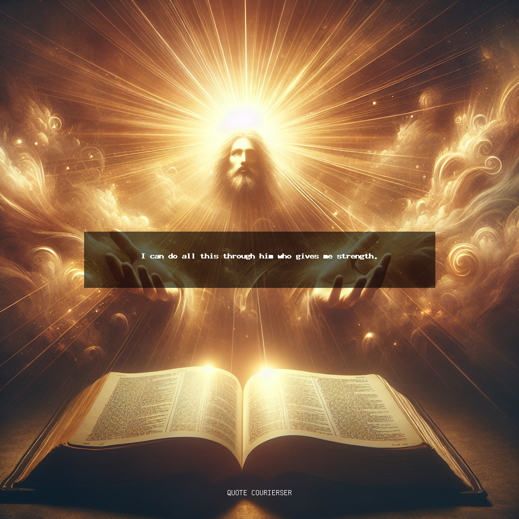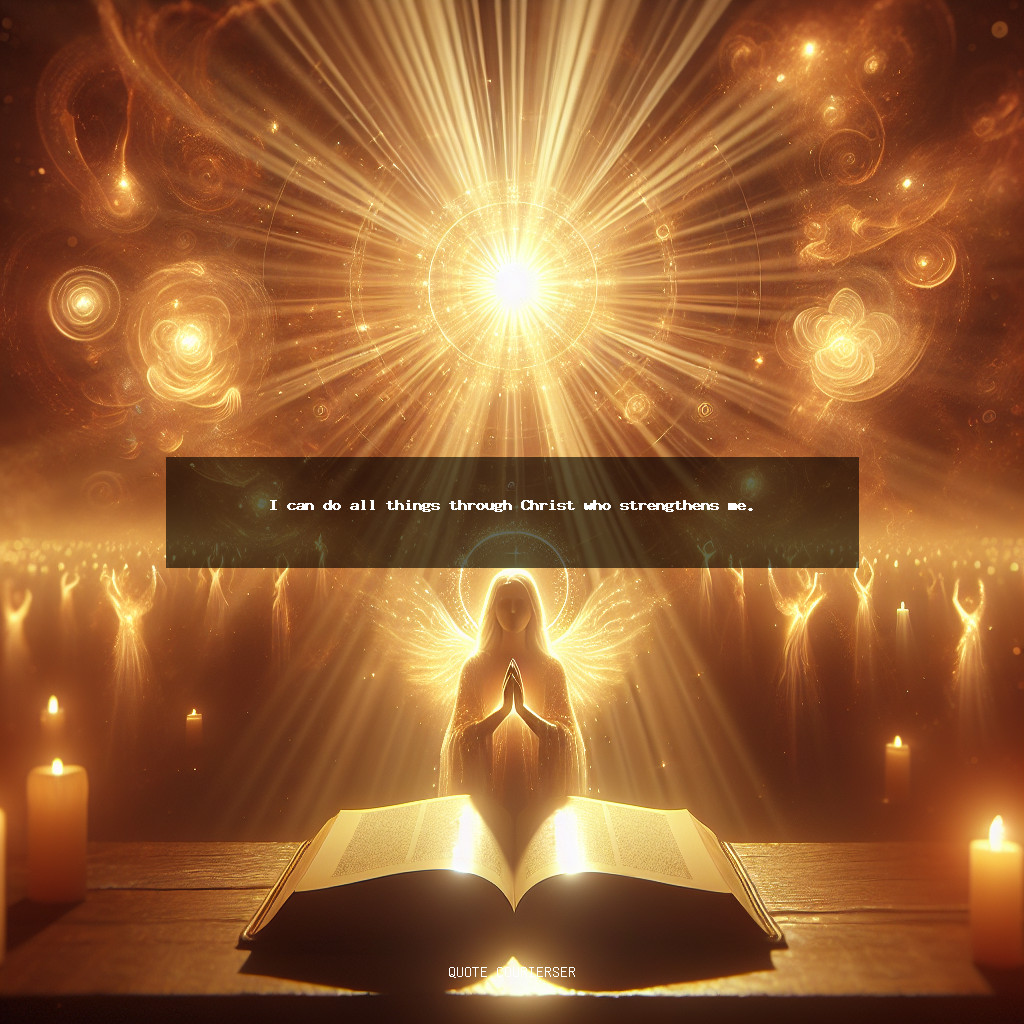 This powerful affirmation reminds believers that their strength comes from Christ, empowering them to face any challenge or task with divine assistance. It fosters a resilient spirit, encouraging perseverance and faith in God’s enabling power for daily endeavors.