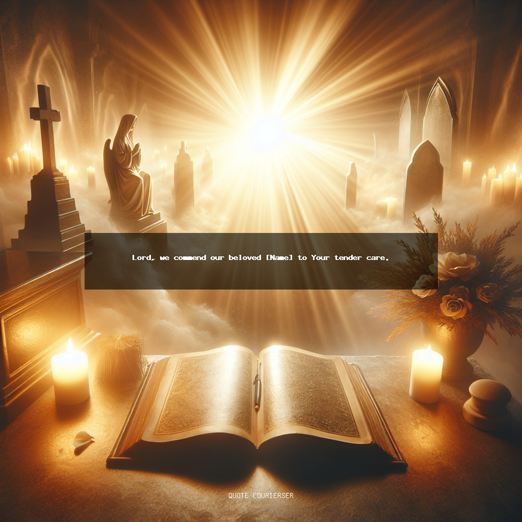 Lord, we commend our beloved [Name] to Your tender care. Grant them eternal peace and light perpetual shine upon them. May their soul rest in Your divine embrace, free from all sorrow and pain. Comfort our hearts with Your promise of everlasting life. Amen.